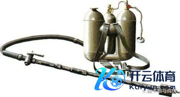 二号火焰喷射器为一战格调的大型火焰喷射器,需4东谈主小组方可搬运使用。摈弃油量为40千克,最大射程45米,可握续喷射12秒。